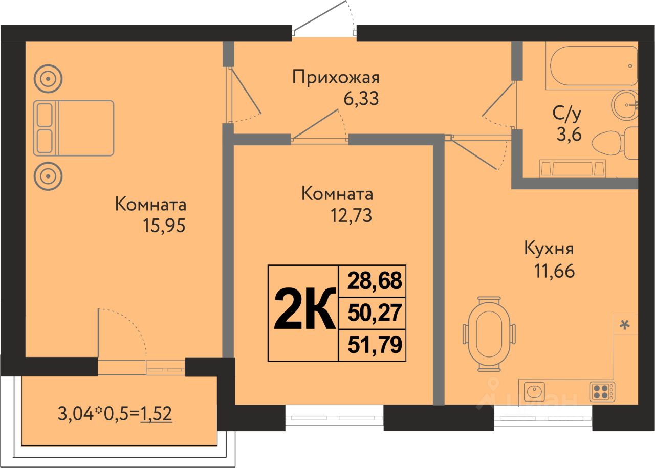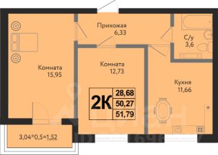 Общая площадь51,79 м²