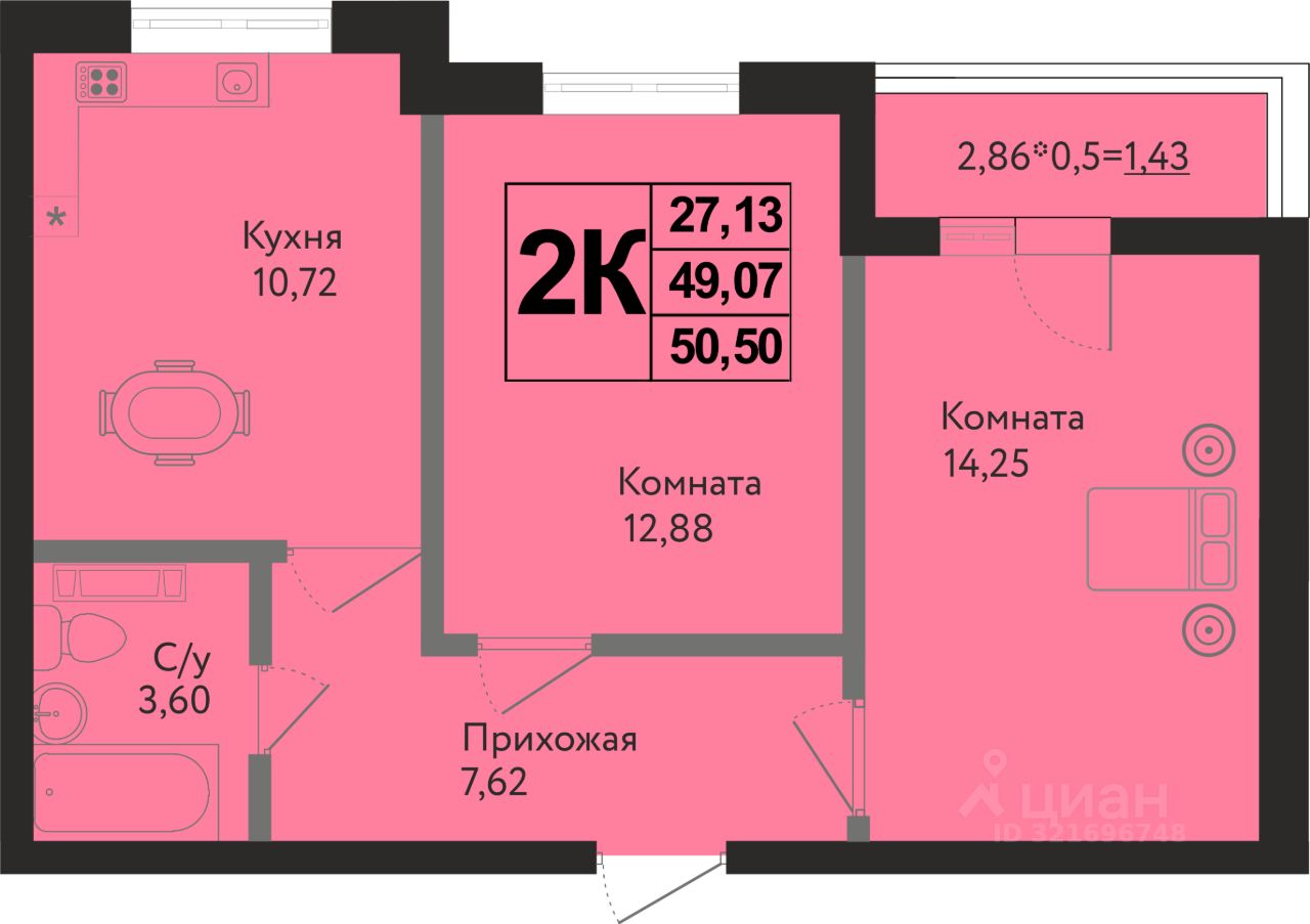 Общая площадь50,5 м²