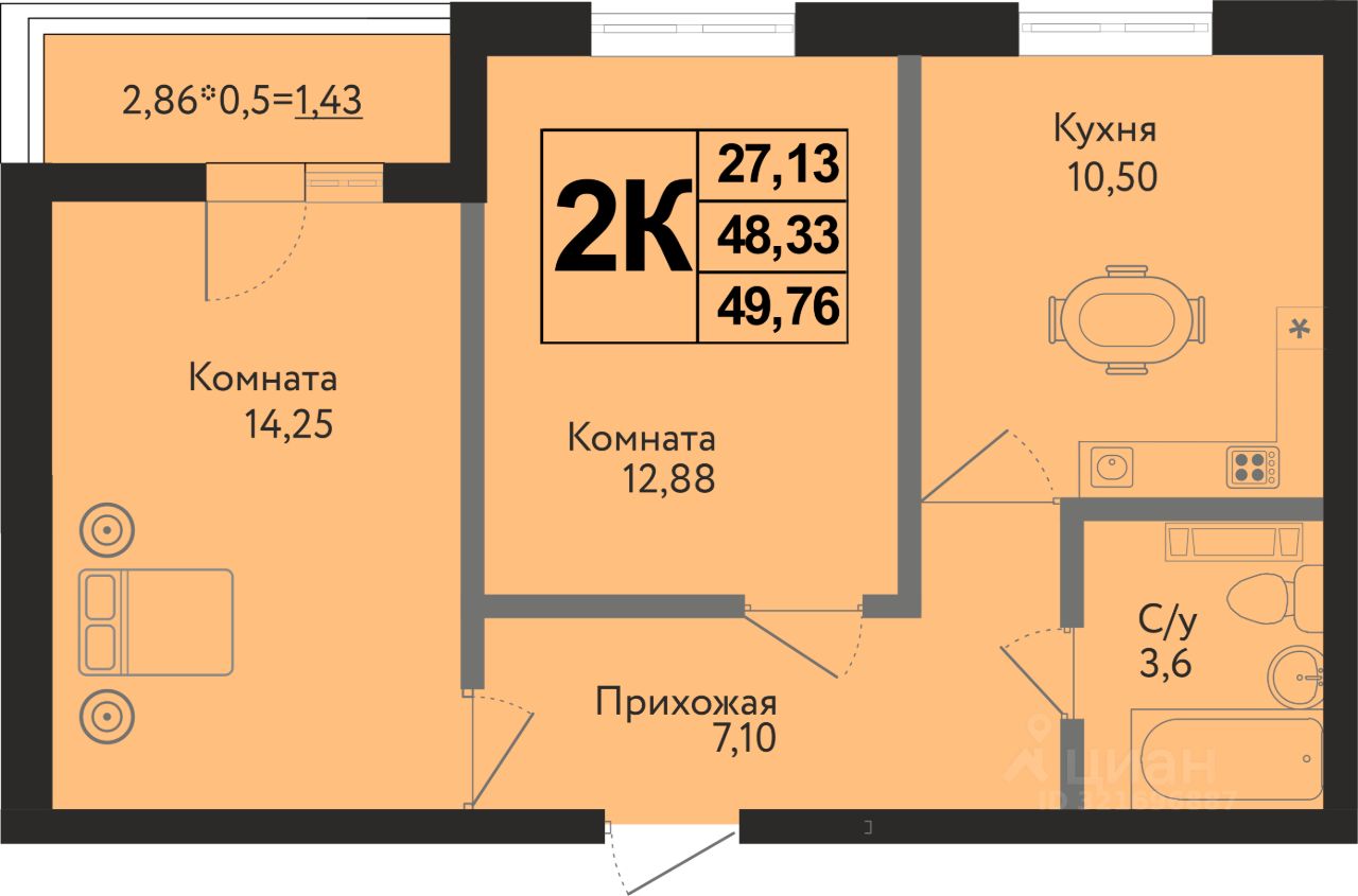 Общая площадь49,76 м²