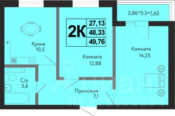 Общая площадь49,76 м²