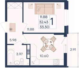 1 комнатная квартира с ремонтом 33.31 м², на 8 этаже в жилом комплексе "Дом 101".
