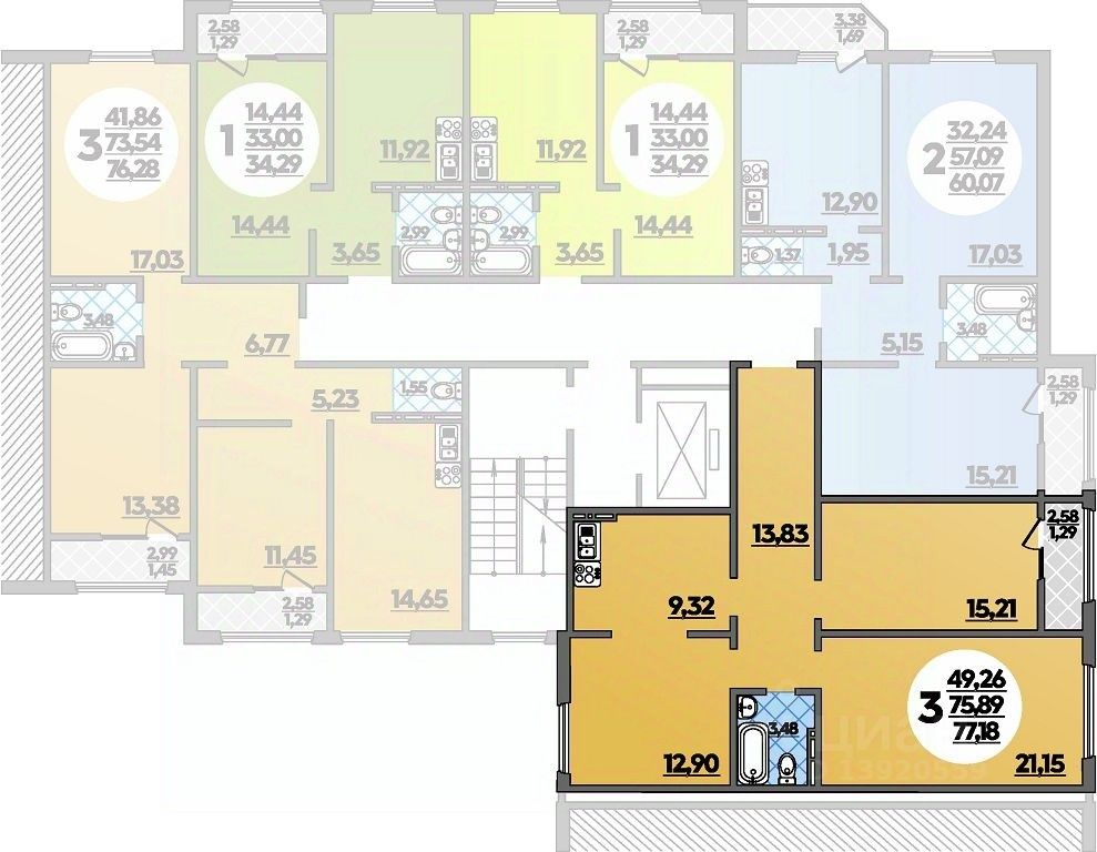 Продаётся 3-комнатная квартира в сданном доме (Литер 3), срок сдачи: II-кв. 2024, общей площадью 77.18 кв.м., на 7 этаже. РАСПОЛОЖЕНИЕ