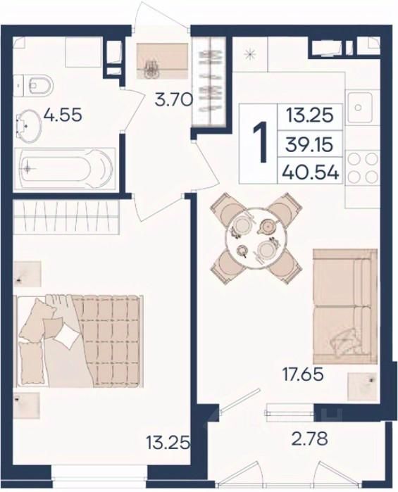 1 комнатная квартира с ремонтом 40.54 м², на 7 этаже в жилом комплексе "Дом 101".