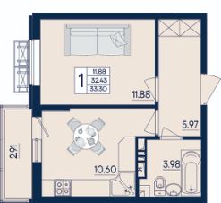 1 комнатная квартира с ремонтом 33.3 м², на 4 этаже в жилом комплексе "Дом 101".