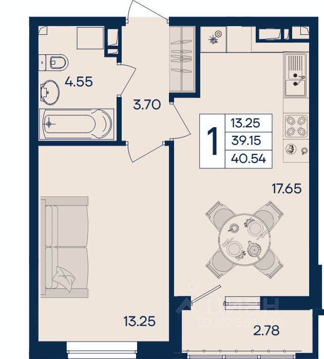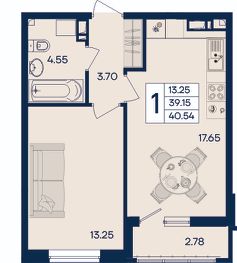 1 комнатная квартира 40.54 м² с ремонтом, на 4 этаже в жилом комплексе "Дом 101".