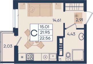 Студия 22,56 м², на 5 этаже в жилом комплексе "Дом 101".