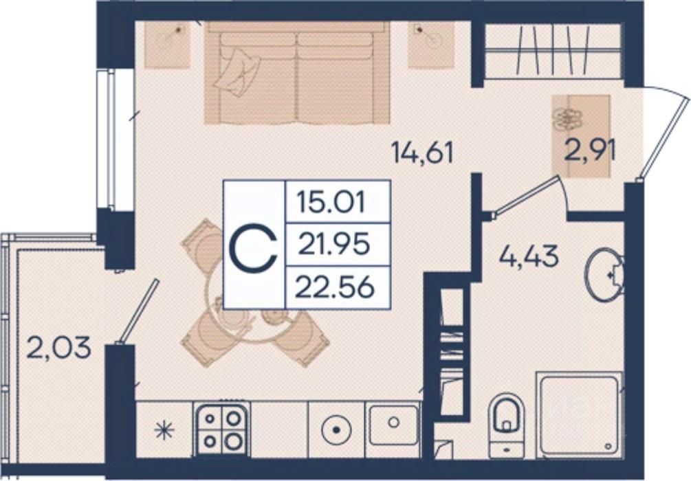 Студия 22.56 м², на 8 этаже в жилом комплексе "Дом 101".
