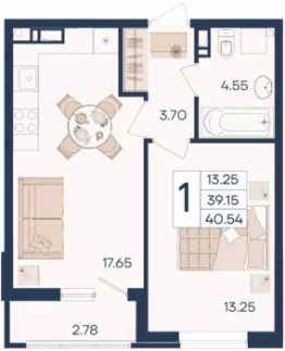 1 комнатная квартира с ремонтом 40.54 м², на 7 этаже в жилом комплексе "Дом 101".