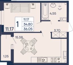 1 комнатная квартира с ремонтом 36.05 м², на 5 этаже в жилом комплексе "Дом 101".
