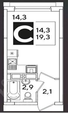 Общая площадь студии: 19.3 м².