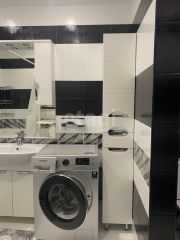 В санузле установлены электрические теплые полы и бойлер для нагрева воды. В гостиной есть сплитсистема, мощности которой хватает на всю жилую площадь. Телевидение и интернет кабельные - Ростелеком.