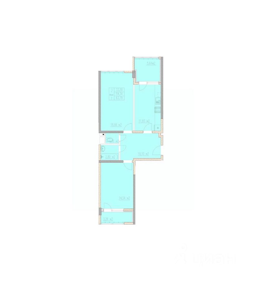 Общая площадь63,79 м²