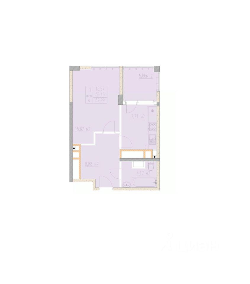 Общая площадь39,29 м²