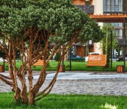 На придомовой территории домов с 1 по 16 предусмотрены "дворы без машин". У этих домов гостевая парковка будет расположена по внешней стороне периметра домов, а персональная парковка для жителей будет подземной. Въезд во внутренний двор данных домов будет запрещён. В домах 17 и 18 будет обустроен двор-стилобат, где будет находиться крытая парковка, детские и спортивные площадки.