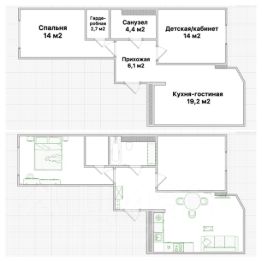 • Самая идеальная планировка бабочка — окна на две стороны• Просторная кухня-гостиная 20 м²
