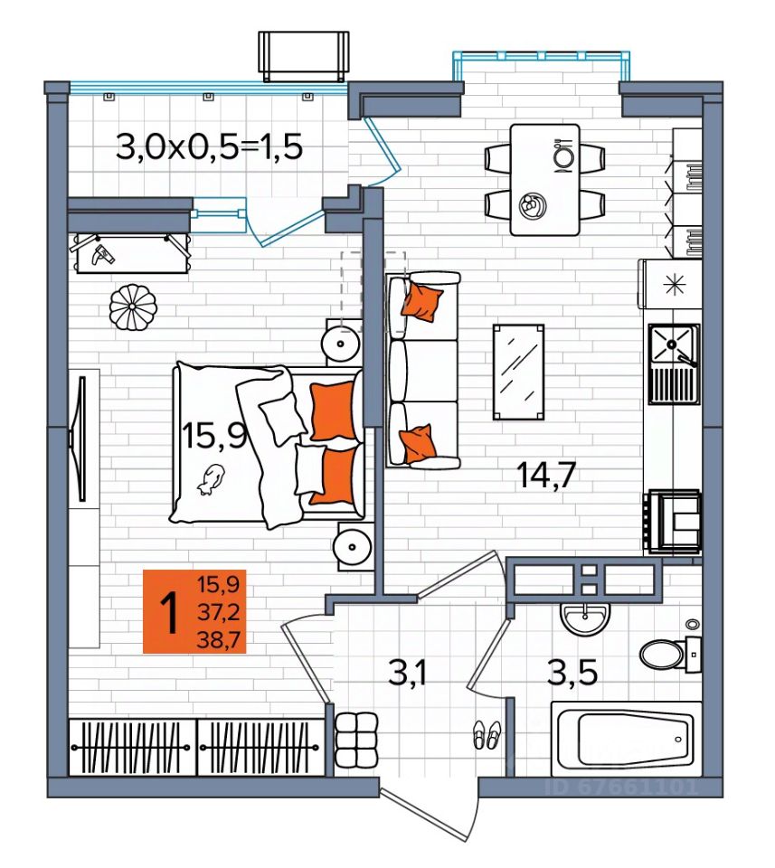 площадью 38.7 кв.м. на 16 этаже в 1-м подъезде - это оптимальный выбор для тех, кто ценит уют, качество и современный комфорт.