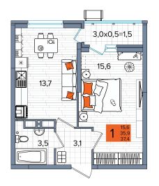 1-комнатная квартира