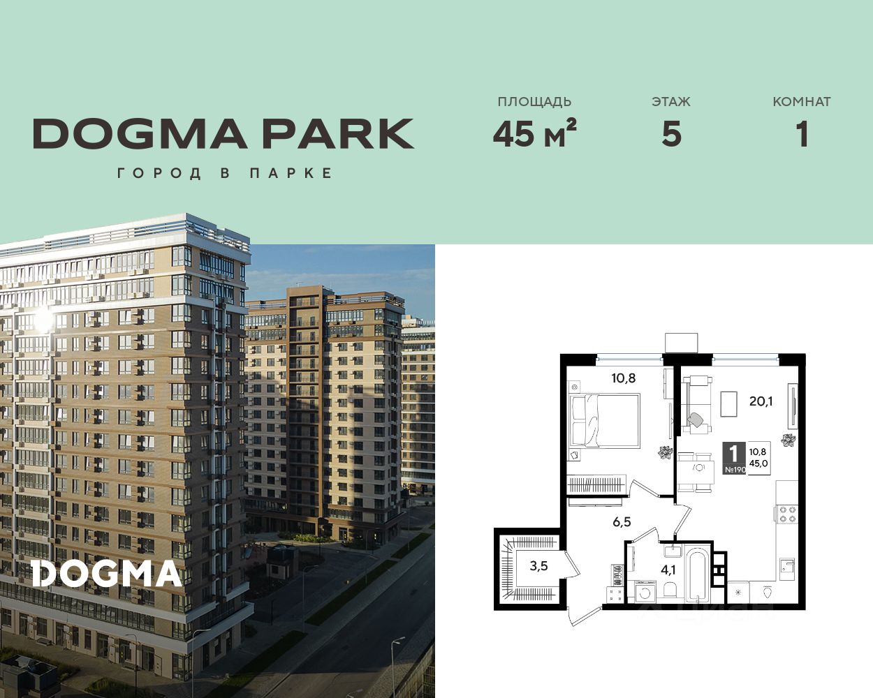 В продаже 1-комнатная квартира от застройщика! Мкр. "DOGMA PARK" г. Краснодар, Литер 13 Срок сдачи: 4 кв. 2027, общей площадью 45 кв.м., на 5 этаже.