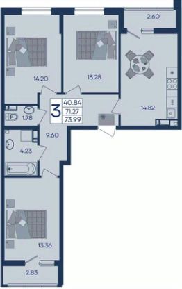 3 комнатная квартира с ремонтом 73.91 м², на 8 этаже в жилом комплексе "Дом 101".