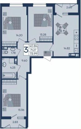 3 комнатная квартира с ремонтом 73.99 м², на 5 этаже в жилом комплексе "Дом 101".