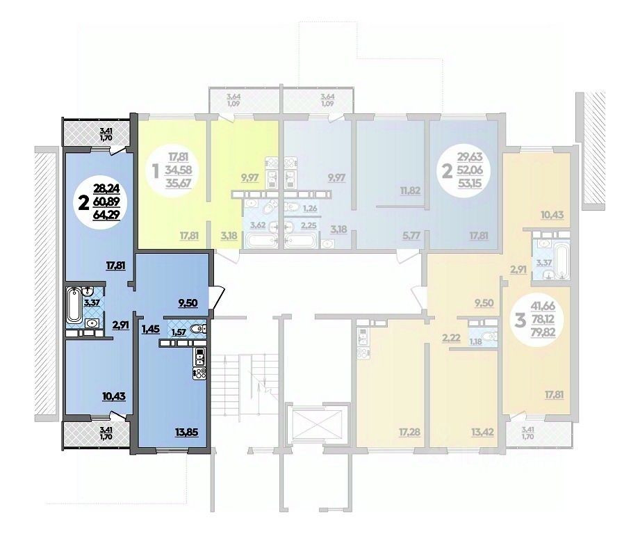 Продаётся 2-комнатная квартира в сданном доме (Корпус 1), срок сдачи: IV-кв. 2024, общей площадью 64.29 кв.м., на 8 этаже.