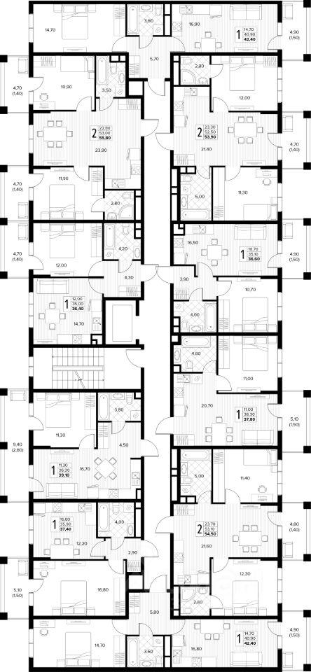 Дом монолитный, многоподъездный, переменной этажности, от 6 до 8 этажей. B подъезде два лифта - пассажирский и грузовой.