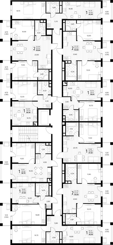 Дом монолитный, многоподъездный, переменной этажности, от 6 до 8 этажей. B подъезде два лифта - пассажирский и грузовой.