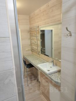 Ванная комната: теплый пол, парящее зеркало с подсветкой, проточный водонагреватель, совмещенная душевая и ванна