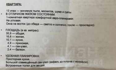 Квартира после качественного евро ремонта, что позволит вам сразу же заселиться без дополнительных вложений и ремонтных работ. Наличие совмещённого санузла добавляет дополнительное удобство.