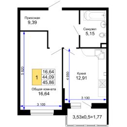 Продаётся 1-комнатная квартира в строящемся доме (Литер 10), срок сдачи: IV-кв. 2025, общей площадью 45.86 кв.м., на 4 этаже. Ипотека от 5,9% на квартиры от ССК на весь срок кредитования