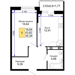 Продаётся 1-комнатная квартира в строящемся доме (Литер 10), срок сдачи: IV-кв. 2025, общей площадью 45.39 кв.м., на 10 этаже. Ипотека от 5,9% на квартиры от ССК на весь срок кредитования