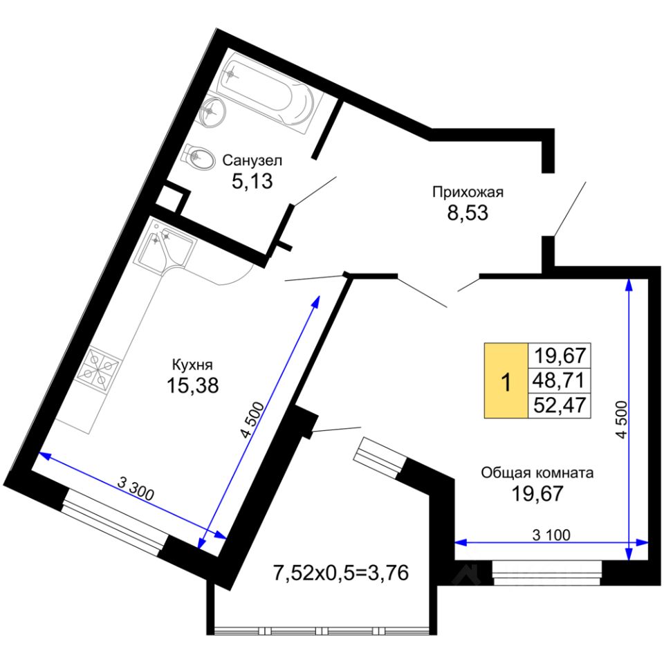 Продаётся 1-комнатная квартира в строящемся доме (Литер 10), срок сдачи: IV-кв. 2025, общей площадью 52.47 кв.м., на 4 этаже. Ипотека от 5,9% на квартиры от ССК на весь срок кредитования