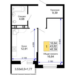 Продаётся 1-комнатная квартира в строящемся доме (Литер 10), срок сдачи: IV-кв. 2025, общей площадью 45.39 кв.м., на 5 этаже. Ипотека от 5,9% на квартиры от ССК на весь срок кредитования