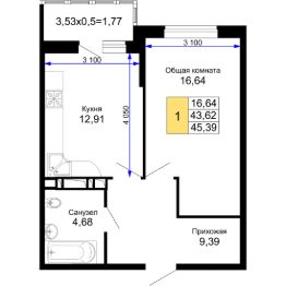Продаётся 1-комнатная квартира в строящемся доме (Литер 10), срок сдачи: IV-кв. 2025, общей площадью 45.39 кв.м., на 10 этаже. Ипотека от 5,9% на квартиры от ССК на весь срок кредитования