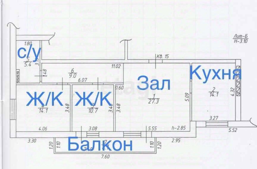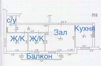 жилые комнаты -10,7; 27,3 и 14,1 кв. м;