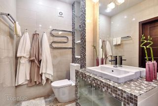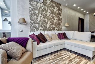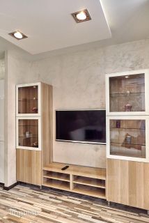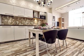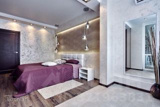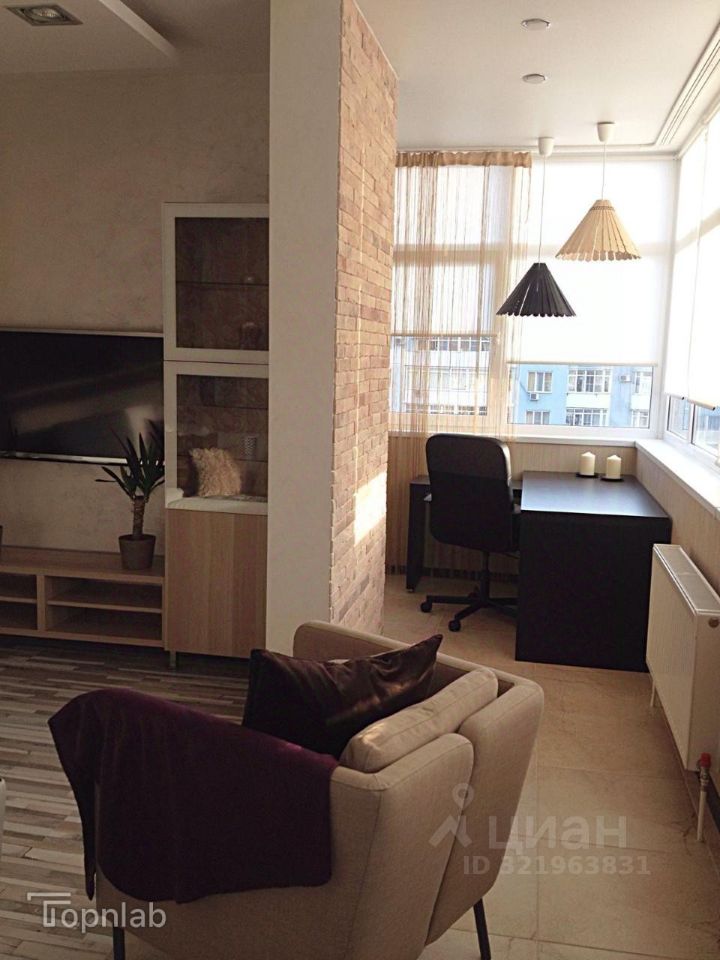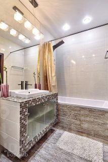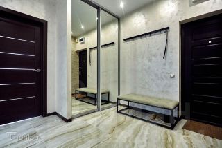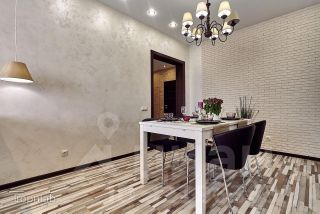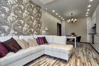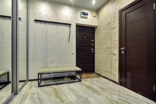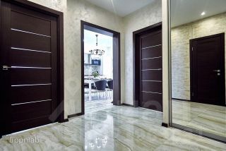 Интересное дизайнерское решение состоит в том, что на балконе две межкомнатных двери, что позволяет передвигаться по квартире по кругу, так же по две межкомнатных дверей имеются и в двух спальных комнатах (за счет такого решения, значительно увеличилась площадь квартиры около 30 м²). Хороший евро ремонт, окна на солнечную сторону. Санузел совмещенный, облицовка стен и пола плитка.