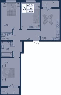 3 комнатная квартира с ремонтом 73.99 м², на 14 этаже в жилом комплексе "Дом 101".