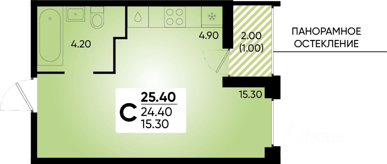 Общая площадь25,4 м²