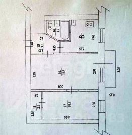 Общая площадь - 41.2 кв.м, жилая - 26.9 кв.м, кухня 6.4 кв.м. Проходная комната, зал 16.4 кв.м и изолированная спальня 10.5 кв.м. Дополнительно в спальне есть ниша, которую можно использовать как гардеробную.