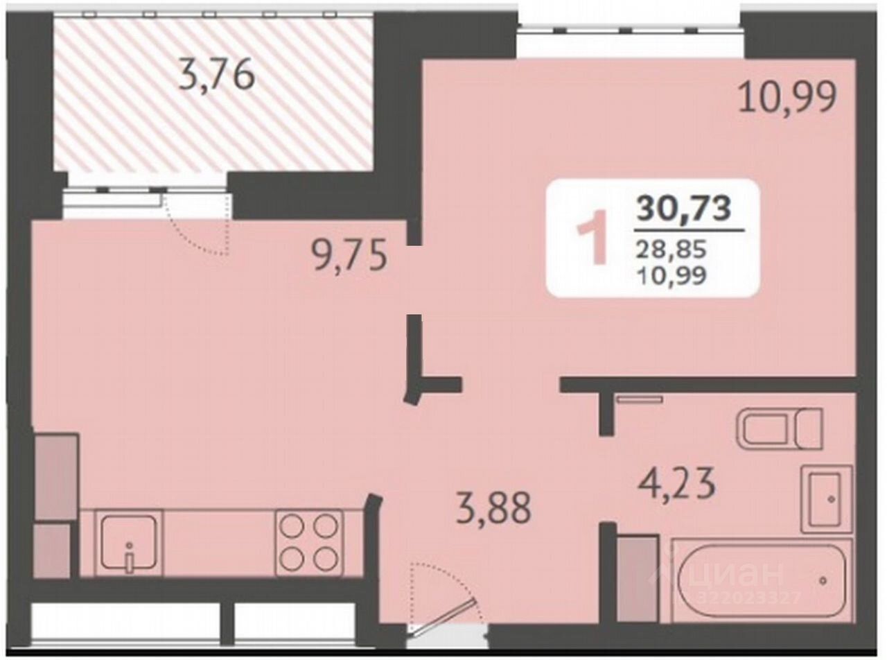 Площадь квартиры: 32 м2.