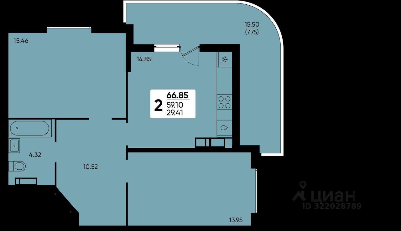 Продается просторная двухкомнатная квартира в новом доме на улице Григория Булгакова, 7к1, в Краснодаре. Квартира общей площадью 66.85 кв. м расположена на 11 этаже 22-этажного монолитно-кирпичного дома, построенного в 2023 году. Жилая площадь составляет 29.4 кв. м, а кухня — 14.8 кв. м. Высокие потолки 2.8 метра создают ощущение простора. В квартире есть лоджия и балкон, окна выходят как на улицу, так и во двор.