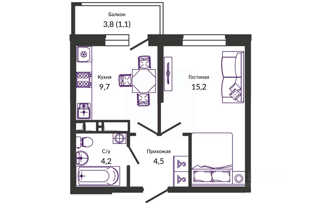 Продается квартира в жилом комплексе "Улыбка" от федерального девелопера "Неометрия". Все дома сданы, ключи в день сделки.