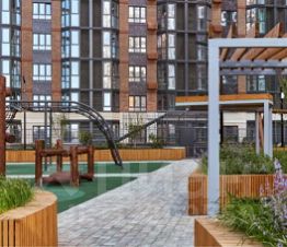 На придомовой территории домов с 1 по 16 предусмотрены "дворы без машин". У этих домов гостевая парковка будет расположена по внешней стороне периметра домов, а персональная парковка для жителей будет подземной. Въезд во внутренний двор данных домов будет запрещён. В домах 17 и 18 будет обустроен двор-стилобат, где будет находиться крытая парковка, детские и спортивные площадки.