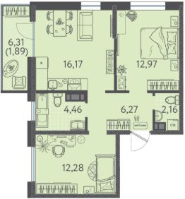 Общая площадь55,16 м²