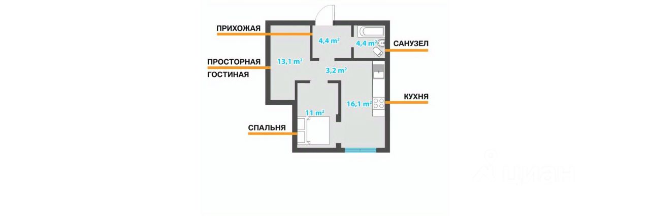 Жилая площадь18,2 м²