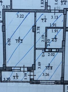 • Просторная комната площадью 19,2м2 и кухня 10,8 м2 с выходом на застекленный балкон, коридор 7,4м2, сан узел 4м2.