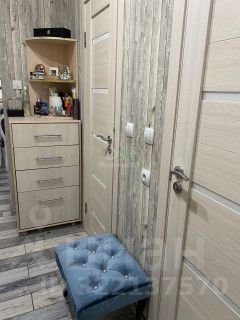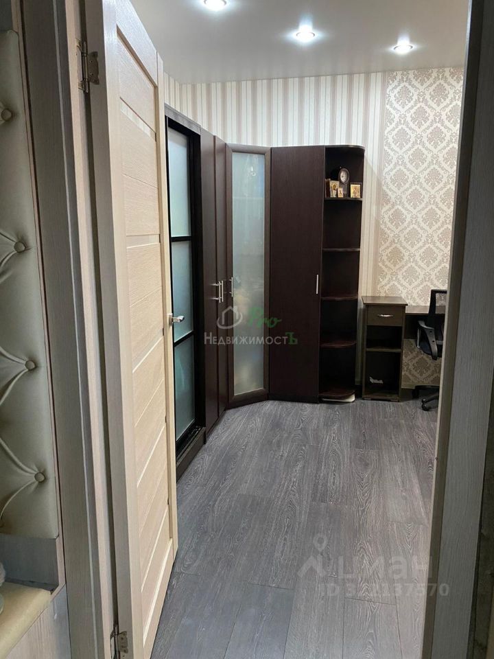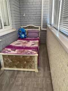 большим зеркалом, большой шкаф гардероб в комнате, кровать полуторка на лоджии, две прикроватные тумбы, письменный стол, кресло и пуфик, шкаф на лоджии.