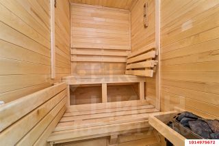 С электрической печью Sawo (Финляндия), с термометром и песочными часами. Есть приточная и вытяжная вентиляция. Время нагрева 1 час.