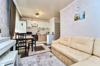 В стоимость квартиры входит мебель и техника. В планировке квартиры есть небольшое изменение: за счёт объединения одной комнаты с кухней, площадь кухни увеличилась, что сделало её более удобной. В детской комнате также достаточно места для всего необходимого (вы можете увидеть это на фото).