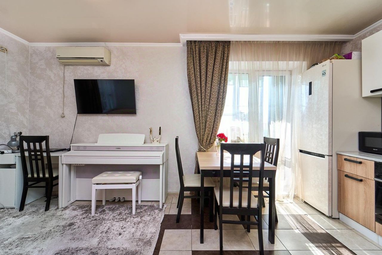Квартира расположена на 2/6 этаже кирпичного дома. Комнаты изолированы, санузел раздельный. Лоджия, которая находится на кухне, застеклена и благоустроена. В квартире недавно был сделан ремонт с использованием дорогих и качественных материалов.